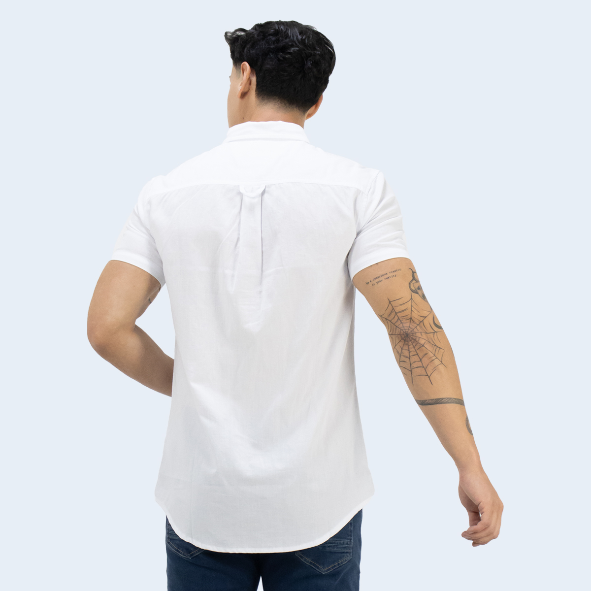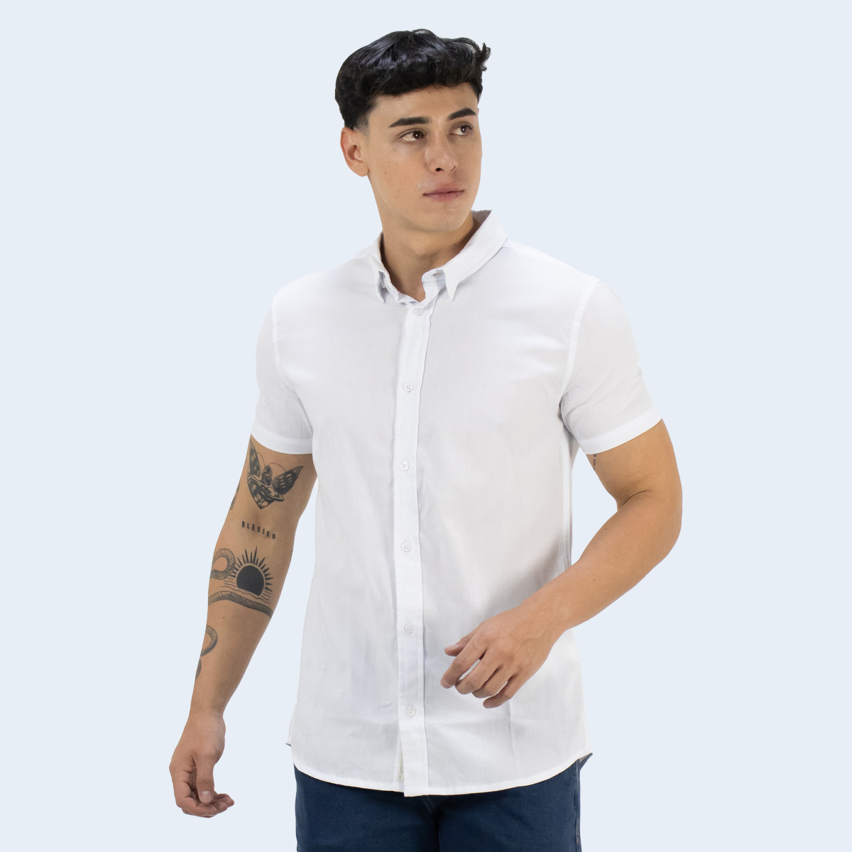La Camisa Oswaldo blanca de Parada 111 es una pieza versátil y moderna para el armario masculino. Confeccionada mayoritariamente en algodón, con un toque de spandex que mejora el ajuste, esta camisa de manga corta y corte slim fit ofrece un look limpio y estructurado.