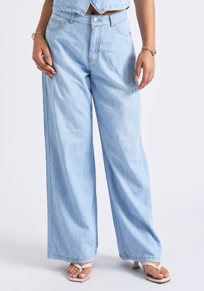 Jean Wide Leg Irene de Parada 111 ofrece un estilo moderno y favorecedor. Confeccionado en denim elástico y de alta calidad, se ajusta perfectamente al cuerpo, realzando la silueta y brindando comodidad para un look femenino, casual y sofisticado.