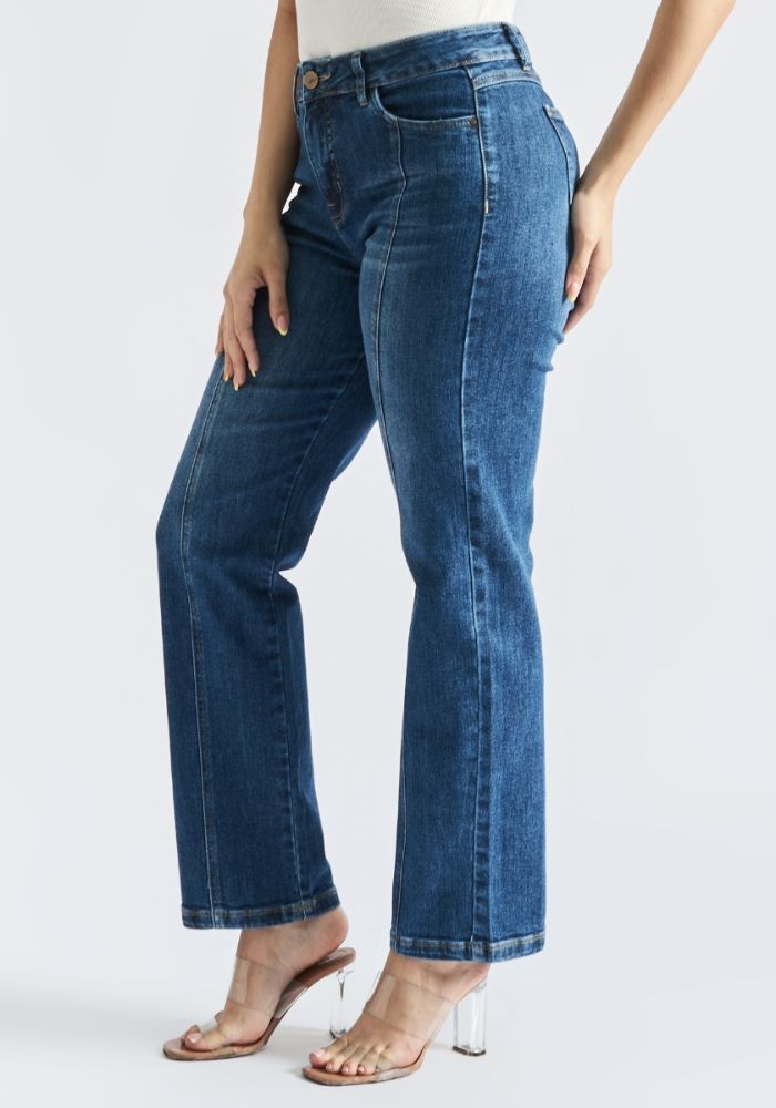 Jean Wide Leg Cropped Azul de Parada 111 ofrece un estilo moderno y favorecedor. Confeccionado en denim elástico y de alta calidad, se ajusta perfectamente al cuerpo, realzando la silueta y brindando comodidad para un look femenino, casual y sofisticado.