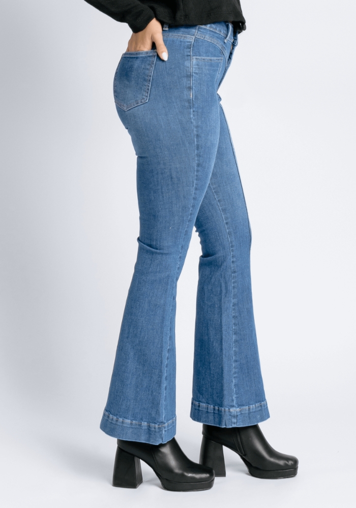El Jean Flare Kendra de Parada 111 combina estilo y comodidad con su diseño acampanado y confección en tela denim de alta calidad. Su corte favorecedor realza la figura femenina, ofreciendo un look moderno y versátil para cualquier ocasión.