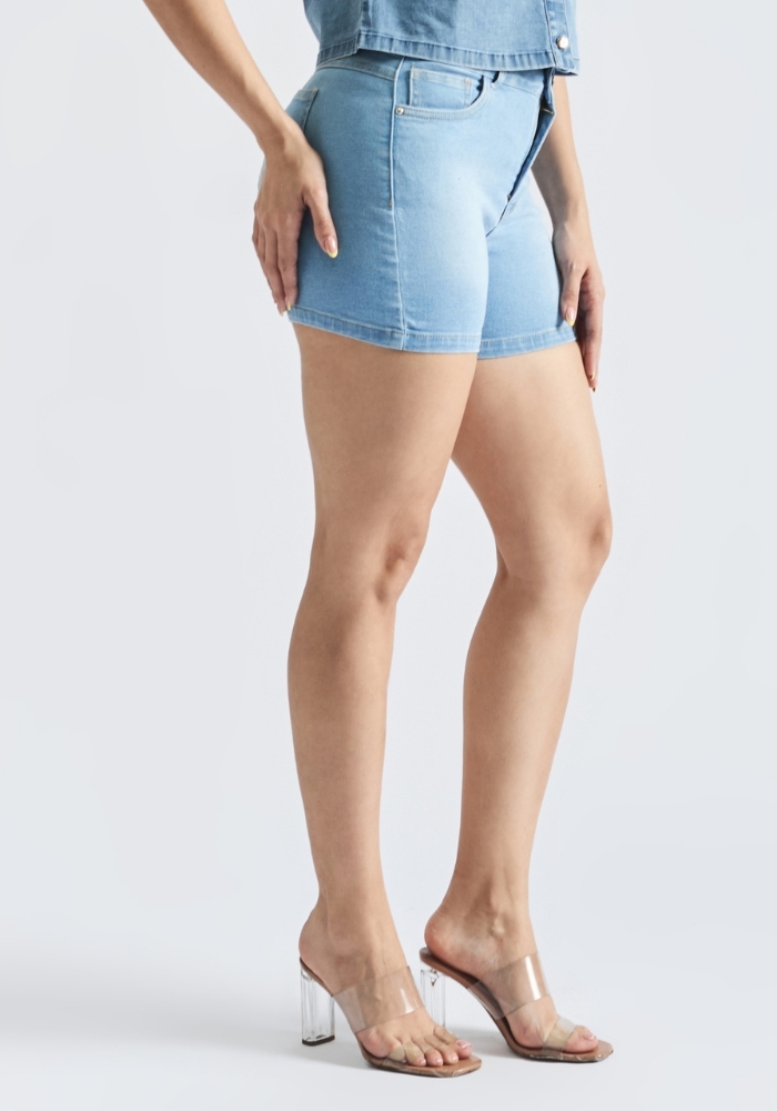 Short básico Isla de Parada 111 combina la frescura del denim con un diseño moderno y femenino. Su corte favorecedor y su tela resistente brindan comodidad y estilo en una sola prenda. Ideal para un look casual y con actitud, perfecto para cualquier ocasión.